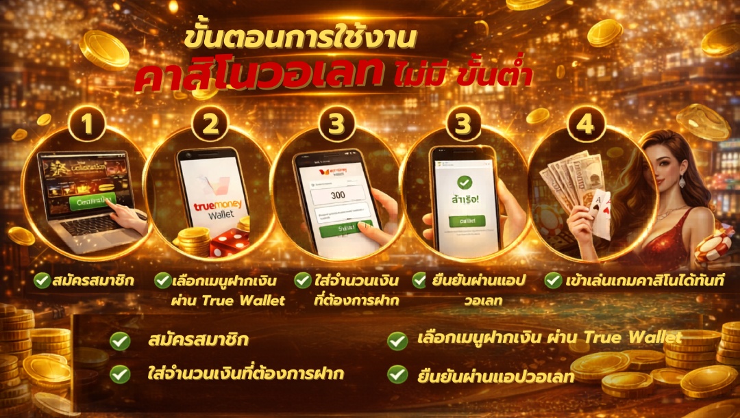 คาสิโนวอเลท ไม่มี ขั้นต่ำ เป็นระบบที่ช่วยให้ผู้เล่นสามารถเริ่มเดิมพันได้ง่ายขึ้น ใช้เงินเริ่มต้นน้อย และทำรายการได้ตลอด 24 ชั่วโมง ไม่ต้องมีบัญชีธนาคารก็สามารถเข้าเล่นคาสิโนออนไลน์ได้ทันที อีกทั้งยังมีระบบอัตโนมัติที่ช่วยให้ฝากถอนรวดเร็ว ปลอดภัย และใช้งานง่าย